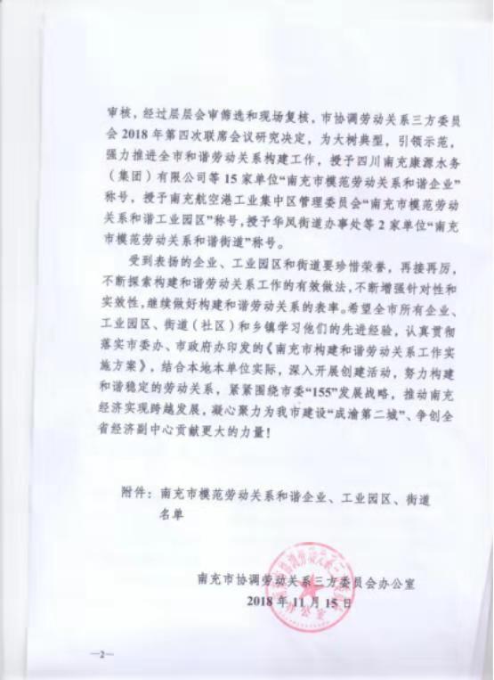 南充浩宇勞務(wù)被授予南充市模范企業(yè)
