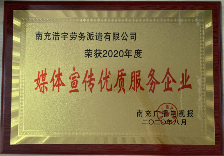 我公司獲得2020年度媒體宣傳優(yōu)質(zhì)服務(wù)企業(yè)